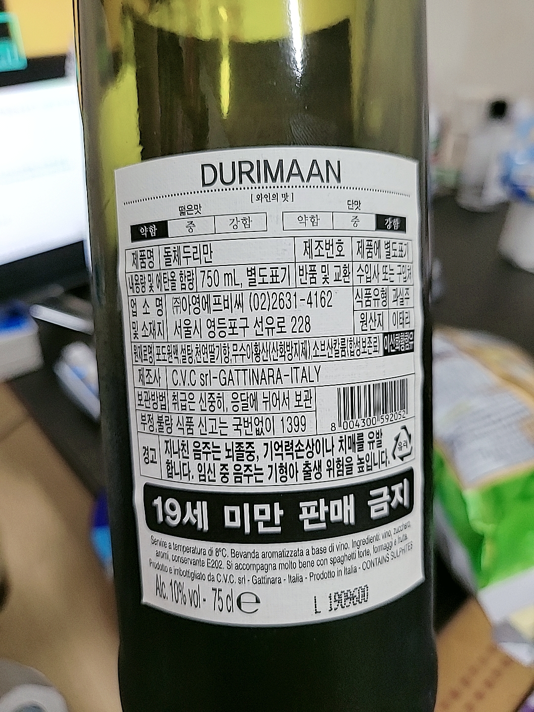 오늘 마신 와인 초보자 입문용 SEMI DOLCE DURIMAAN 돌체두리만 와인